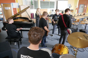 Die Schulband trifft sich immer am Dienstag nach der sechsten Stunde im kleinen Musikraum (021). Weitere Informationen gibt es bei schulband@gymnasium-gross-ilsede.de.