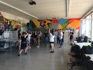 Das Warm-up zeigt den Schülern, dass es auch bei der Performance manchmal nicht ohne Training und intensive Vorbereitung geht. Dies rief direkt die erste kleine Improvisationsaufgabe auf den Plan.