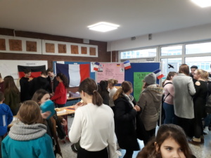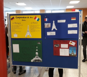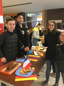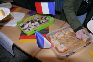 Am Mittwoch, dem 22. Januar 2020, feierte das GGI den Deutsch-Französischen Tag in beiden Pausen in der großen und kleinen Pausenhalle. Geboten wurden vor allem kulinarische Köstlichkeiten wie Crêpes und Kuchen, deren Verkauf mit französischer Musik untermalt wurde. Vor allem bei den Crêpes bildeten sich lange Schlangen, die über die Pausen hinweg bestehen blieben. Daneben waren Plakate mit Informationen zu beiden Ländern zu sehen, die im Unterricht vorbereitet wurden. So beschäftigen sich Schüler des 7. Jahrgangs mit den Unterschieden des französischen collège zu unserem Gymnasium. Schüler des 9. Jahrgangs, die gemeinsam mit Herrn Moog den Deutsch-Französischen Tag organisierten, gestalteten einen abécédaire zu den deutsch-französischen Beziehungen und eine Umfrage zu den ersten Eindrücken Deutscher, wenn sie an Frankreich denken. Eine dritte Gruppe gestaltete eine Verfilmung des französischen Gedichts Déjeuner du matin von Jacques Prévert, die während beider Pausen in der großen Pausenhalle abgespielt wurde.