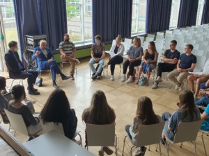 Im Zuge der Auszeichnung als „Schule ohne Rassismus – Schule mit Courage“ erhielt die gleichnamige AG unter Leitung von Frau Vieweg am 29.6.2022 Besuch des Projekt-Paten Herrn Jürgen Trittin (MdB, Grüne), da er zur feierlichen Auszeichnung am 12.07.22 nicht vor Ort anwesend sein kann.