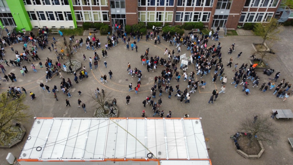 Manche aufmerksamen Beobachter hatten sich schon über die roten Kreise auf dem Schulhof gewundert: Hubschrauberlandeplatz oder Verkehrsübungsstrecke? Am Mittwoch klärte sich das Rätsel: Ein Drohnenfotograf des Landkreises Peine bat alle Klassen zum Fototermin auf dem Schulhof. Wer weiß noch, wo er gestanden hat? Vielen Dank für die Mitarbeit!