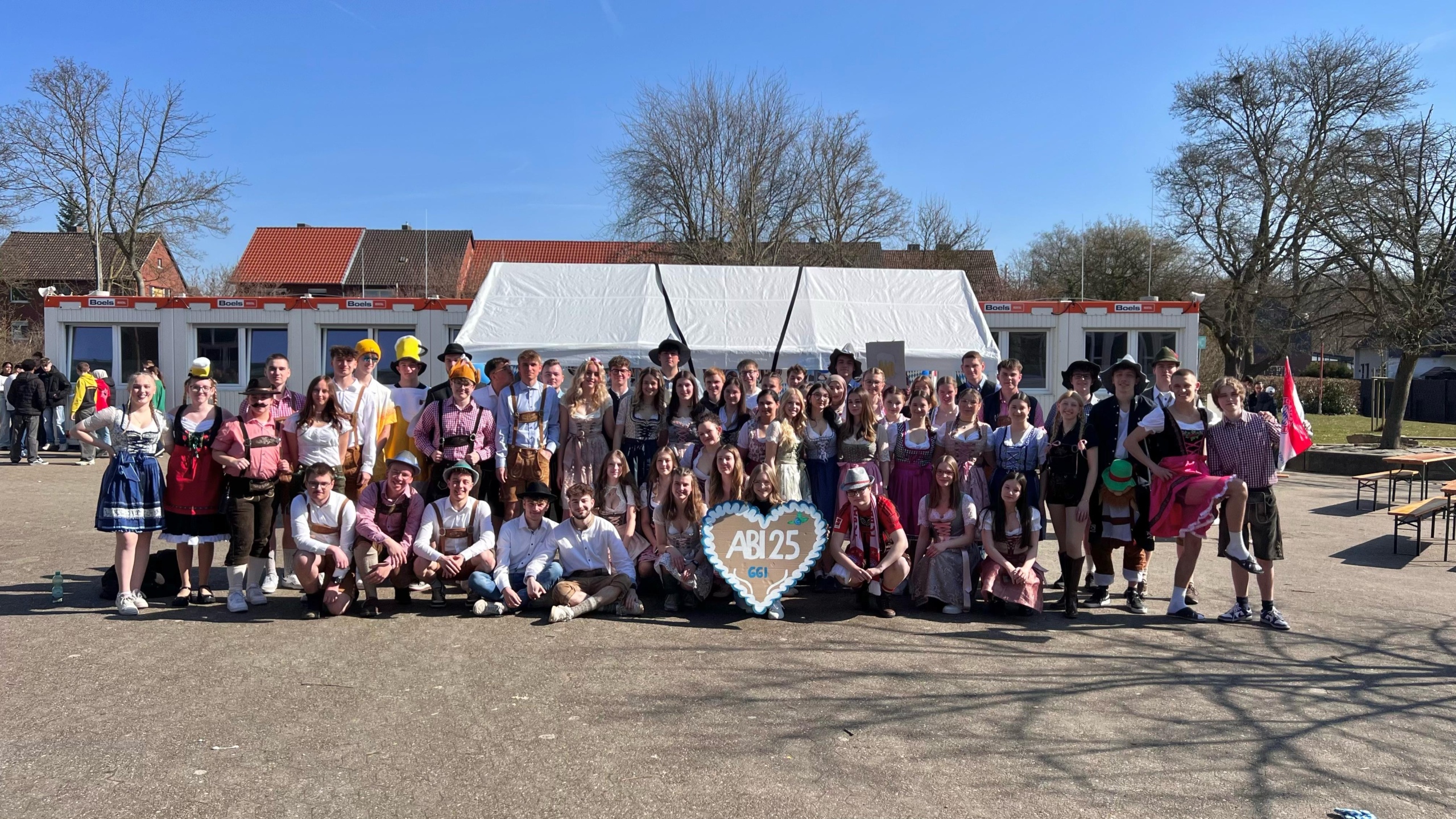 Auch in diesem Schuljahr durfte die allseits be- und geliebte Mottowoche unseres 13. Jahrgangs nicht fehlen! Vom 17. bis 21.03.2025  ging es für unsere angehenden Prüflinge in schrillen und kreativen Outfits in ihre letzte volle (Wortspiel!?) Schulwoche. In den großen Pausen verwandelte sich der Schulhof in einen Laufsteg, um SchülerInnen der unteren Jahrgänge, Lehrkräften und Co die Kostüme und Verkleidungen vorzuführen. Am Donnerstag wurde gar ein ganzes „Festzelt“ samt einiger Sitzgarnituren auf dem Schulhof platziert – stets begleitet mit entsprechender (Party-) Musik, die nicht nur unseren 13ern, sondern auch allen Zuschauern sichtlich gute Laune bescherte!