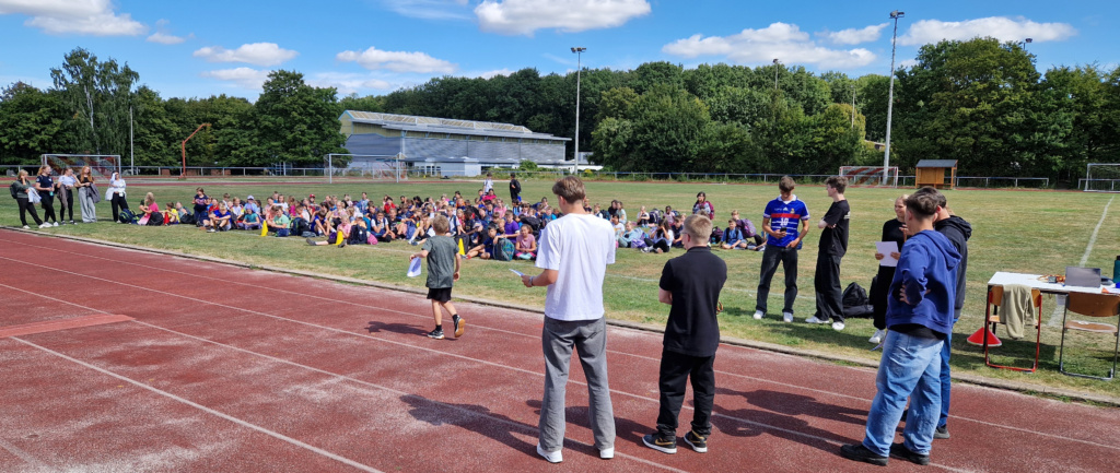 Auch ihre erste Großveranstaltung meisterten die „Neuen“ mit Bravour. Bei ihren ersten Bundesjugendspielen am GGI, unterstützt von den Sportlehrern und Schülern der 11. Klassen, strengten sich alle an und freuten sich, dass auch der Wettergott einen strahlend sonnigen Tag im Ilseder Stadion für sie bereithielt.