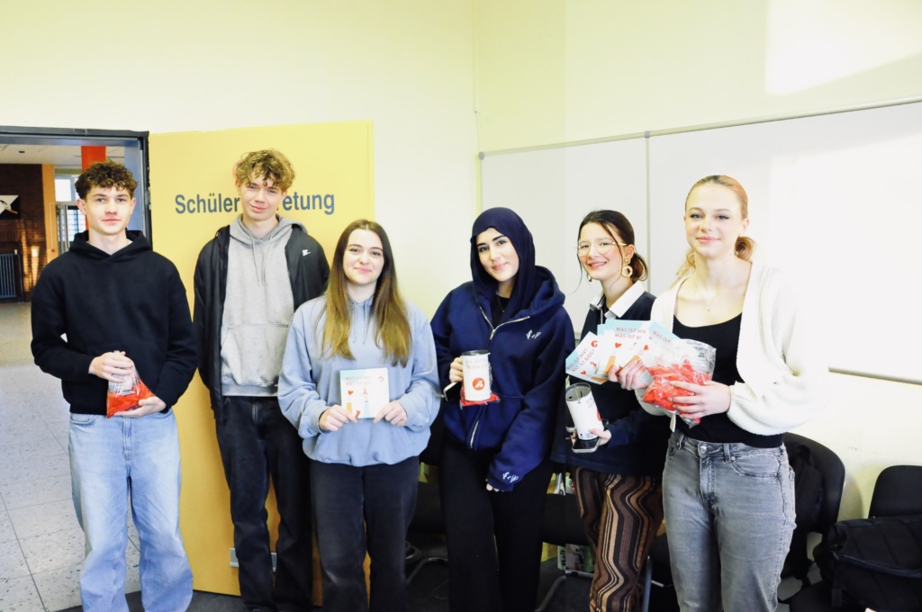 Auch am GGI wurde dieser Tag aktiv gestaltet: Mitglieder unserer SV waren unterwegs, um die Schülerschaft mit informativen Flyern über HIV und AIDS aufzuklären und Spenden für die Braunschweiger AIDS-Hilfe zu sammeln.
