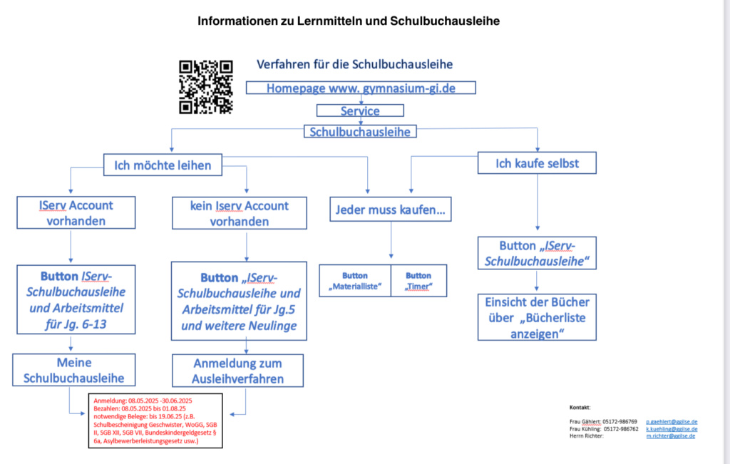 - Überweisung der Leihgebühr: 08.05.2025 bis 01.08.25 (Verwendungszweck beachten! Siehe IServ)