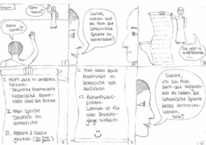 Das Übersetzen lateinischer Texte ist ein wichtiger Teil des Lateinunterrichts. Studien zeigen immer wieder, dass sich durch die intensive Beschäftigung mit Texten die Lesekompetenz und Ausdrucksfähigkeit im Deutschen wesentlich erhöht. Und das wiederum ist ein Vorteil für das spätere Leben.